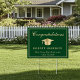 Elegant green graduation yard sign featuring a gold grad cap, "Congratulations" in a classic script and the graduate's name, school and class year in modern typography.