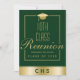Send your 10th class reunion classmates our modern flat card invitation. This elegant design template features a green and shiny gold border background with faux gold typography that reads "10th Class Reunion" with your school name and year to personalize Below is your school's monogram. The back of the card has more of your celebration details for you to customize. Designed by ©Tim Coffey and