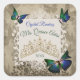 Edit your name and message on this vintage beige & green Quinceanera personalized sticker. Antique, decorative border and green butterflies Quinceanera label is versatile for green or teal theme colors. Butterflies and gemstone tiara can easily be resized and repositioned on your seal.