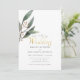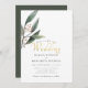 Elegant green leaf gold script wedding invitation