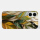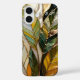 Elegant iPhone case featuring a refined stained glass style botanical leaf design in rich green, warm golden, and soft neutral tones. The layered composition of detailed leaves creates a calm, natural, and sophisticated look.
