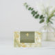 An elegant green and gold marble business card with a gold fleur de lis logo.