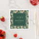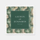 This elegant wedding napkin design features a sophisticated marbled pattern in shades of green, cream, and gold, creating a luxurious feel. The central dark green rectangle provides a striking backdrop for the clean, serif typography that highlights the names and date, adding a classic touch to the overall composition. The harmonious color palette and swirling textures evoke a sense of timeless refinement, making it perfect for formal celebrations. Ideal for weddings or significant events, this design blends traditional elegance with modern simplicity, ensuring a memorable presentation.