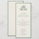 Create your own custom wedding menu cards in a luxurious old money style. Add your wedding food menu in elegant, timeless typography featured here in green color design.