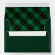 Elegant dark green envelope with Christmas green plaid tartan liner and personalized return address. The reverse side of the envelope is adorned with a stunning golden stag silhouette stamp , elegantly complementing the return address and adding a luxurious finish.