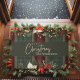 Elegant Green Plaid Red Poinsettia Name Christmas Doormat