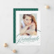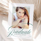 Announce your graduate’s milestone with this elegant graduation announcement, showcasing their senior photo alongside stunning green modern calligraphy. Personalize the design by adding the graduate's name, school name, and graduation year, creating a sophisticated and memorable way to celebrate this special achievement. Perfect for both high school and college graduates, this announcement offers a refined look to share with friends and family, making it a beautiful keepsake for years to come.
