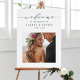 Modern wedding welcome sign (poster) with green elegant calligraphy and a photo. For more advanced customization of this design, please click the Customize Further link to change font, size, and color.