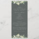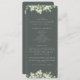 A dark gray green wedding program/order of ceremony, with a condensed ceremony outline and thank you message on the front and a listing for a large wedding party on the reverse. Featuring an edging of hand painted snowberries and eucalyptus on the front and a stem on the back. All text is fully editable. Please view this Collection in my store for programs with alternative wording/layouts and in different sizes/colors/shapes. Coordinating items also available.