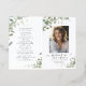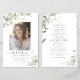 Elegant Greenery Funeral Program Brochure. Honor the life and memory of a loved one with this elegant greenery-themed funeral or memorial program brochure. This beautifully crafted design features soft watercolor eucalyptus leaves, paired with a modern yet timeless script font that reads “Forever in Our Hearts.” The front panel includes space for a cherished photo, full name, and life dates, while the inside offers a meaningful layout for a scripture passage, tribute message, and an organized order of service.