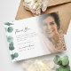 Elegant watercolor eucalyptus celebration of life thank you card with a personalized photo and message.