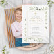 Yes, you can print on the back of your invitation for free! Most designs already have a corresponding design on the back that can be personalized using the Design Tool and going to Layers. This is a great way to communicate more information or further personalize your Elegant Greenery Photo First Holy Communion Invitation. The option is really up to you.