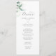 This elegant greenery wedding dinner menu card is perfect for a simple wedding. The modern elegant design features a natural botanical arrangement of eucalyptus, leaves and plants with a subtle mint green watercolor wash accent. This menu can be used for a wedding reception, rehearsal dinner, or any event.
