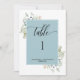 Elegant Greenery Wedding Table Number, Mist Blue
