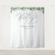 This elegant floral greenery wedding tapestry makes the perfect backdrop for your wedding photos. The modern design features hand painted watercolor greenery with white magnolia flowers. Personalize with the bride's and groom's names and wedding date in black script. Designed by Susan Coffey.