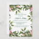 Elegant Greenery Wreath With Pink Rose Bud Wedding Invitation