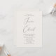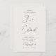 Plain white envelopes are included with paper invitations and will come to fit the invitation size you select. If you don’t need the envelopes, you may choose to not receive them by selecting the dropdown below "Envelopes" and choosing "None." If you’d like to have a design on your envelopes, you can browse all of these available envelopes to find the design that complements your Elegant Greige Script Wedding Invitation.