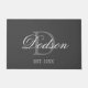Designed with customizable dark grey background and light grey monogram initial on the center. Personalized with couple's last name in classy white calligraphy script lettering and year established in white numbers on lower front center. Makes a great housewarming or bridal shower gift idea.