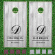 Elegant Grey Wood Family Name Monogram Cornhole Set