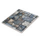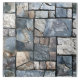 A beautifully arranged pattern of grouted flagstone tiles showcases a blend of natural stones in varying shades of blue, gray, and brown.