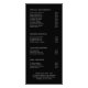 Modern Beauty Salon Price list / Service menu rack card with your business name in an elegant calligraphy at the top and your services below in a white serif font over a black background. Each side has four premade sections and your business information is on the bottom of the backside. A simple and minimalist design that is great for a beauty, hair or nail salon.
