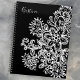 Introducing our elegant customizable planner, perfect for adding a touch of personal flair to your daily organization. The cover features a hand-drawn black and white floral and paisley design, reminiscent of intricate henna art. The pattern cascades gracefully from the top right corner to the bottom left, creating a striking visual contrast.