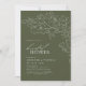 Elegant delicate hand drawn flower illustration and modern script typography details, in dark sage green and white color, simple and romantic. Great floral bridal shower invitations for modern rustic wedding, country garden wedding, and simple boho wedding in summer and winter.