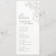 Elegant delicate hand drawn flower illustration and modern script typography details, in dark sage green and white, simple and romantic. Great floral wedding menus for modern rustic wedding, country garden wedding, and simple boho wedding in summer and winter.