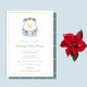 Refined party invitation featuring a hand painted watercolor crest with single letter monogram (in real foil) and a slim border (also in real foil). The crest contains watercolor greenery, blue and white Chinoiserie elements and also festive red and white poinsettia. On the reverse side is a blue green and red tartan (in tones to match the front), created digitally. Shown here for a Christmas or Holidays Open House but all of the text is completely customizable to your needs so could be used as a Wedding Anniversary or Newlyweds Brunch celebration for example.