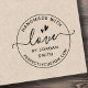 Rubber stamp featuring the text "Handmade with love"and your custom name.