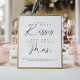 Capture the magic of your bridal shower with this chic "Elegant Handwritten Script How Many Kisses Game Poster." This beautiful bridal shower sign adds a touch of sophistication to the celebration. Guests will love guessing how many Hershey's Kisses are in the jar, creating a fun, interactive activity that brings everyone together. The classic black and white color scheme complements any decor, making this poster a must-have for the bride-to-be.