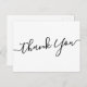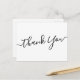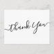 Elegant white thank you postcard featuring the text "thank you" across the card in a handwritten style script font