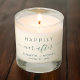 Elegant scented candle for your wedding reception decor, favors, gifts and personal keepsakes featuring "Happily Ever After" written in a mix of sage green typography and a script with swashes and your names and wedding date in simple modern typography.