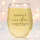 Elegant wedding stemless wine glass for the bride and groom to celebrate with at their engagement party, rehearsal dinner, wedding reception, wedding anniversary, etc. featuring "Happily Ever After" in simple modern typography and a a stylish script with swashes, your first names joined together by a heart and your wedding date.