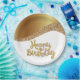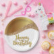 An Elegant Happy Birthday In Gold And White Paper Party Plate