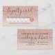 A modern, stylish loyalty card for hair and makeup artist business card with modern hand lettering style brush typography in white on a trendy faux rose gold glitter and pastel blush pink trendy and elegant background. If you need any customization, don't hesitate in contacting me