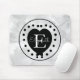 Elegant Heart Initial Letter Monogram Black White Mouse Pad