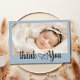 This elegant card in a soft dusty blue tone features your baby’s photo on the front with graceful heart script and space for a personal thank-you message on the back. The simple and timeless design adds a touch of sophistication, perfect for celebrating your baby shower with style. Ideal for new parents, baby shower hosts, or as a chic keepsake for family and friends.