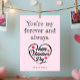 This elegant Valentine’s Day card features a heart-shaped typography design with the text "Happy Valentine’s Day." The customizable message, "You’re my forever and always," is beautifully displayed. Set against a soft pink background, this card is perfect for expressing your love on this special day.