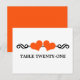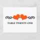 Sweet and whimsical Elegant Hearts Wedding Table Number Postcard featuring a fancy swirl border adorned with a pair of orange hearts. This modern table card is the perfect choice for a chic and elegant wedding. Easy to customize, simply add the appropriate table number(s) in the text field provided. Click "Customize It" to find additional personalization options.