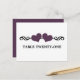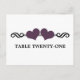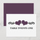 Sweet and whimsical Elegant Hearts Wedding Table Number Postcard featuring a fancy swirl border adorned with a pair of purple hearts. This modern table card is the perfect choice for a chic and elegant wedding. Easy to customize, simply add the appropriate table number(s) in the text field provided. Click "Customize It" to find additional personalization options.