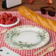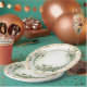 This elegant plate design features a decorative faux gold border design with three sage green leaf groupings.