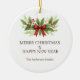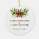 Add timeless holiday charm to your tree with this elegant Christmas ornament featuring watercolor holly leaves, bright red berries, and a festive red bow. A beautiful keepsake that captures the warmth and joy of the season, this ornament makes a perfect gift for family, friends, or holiday party hosts. Personalize it to create a unique decoration that will be cherished for years to come.