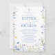Elegant Holy Baptism & 1st Birthday Blue Flowers Invitation
