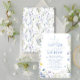 Plain white envelopes are included with paper invitations and will come to fit the invitation size you select. If you don’t need the envelopes, you may choose to not receive them by selecting the dropdown below "Envelopes" and choosing "None." If you’d like to have a design on your envelopes, you can browse all of these available envelopes to find the design that complements your Elegant Holy Baptism 1st Birthday Blue Flowers Invitation.