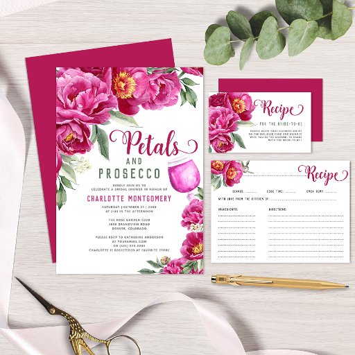 Elegant Hot Pink Floral Recipe Bridal Shower Enclosure Card