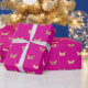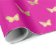 This wrapping paper features elegant faux gold foil butterfly pattern onhot pink background.