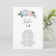 These elegant hydrangea table number seating chart cards are perfect for a spring or summer wedding. The classic floral design features soft powder blue watercolor hydrangeas accented with neutral blush pink flowers and green leaves. The card prints on the front and back (double-sided).