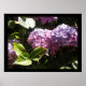 Beautiful way to dress up your wall with this elegant hydrangea print. Framed by a black border mauve and pink hydrangeas nestled among their green foliage. The sun just catching the leaves.