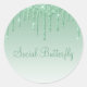 Elegant Ice Green Glitter Script Modern Girly Glam Classic Round Sticker
